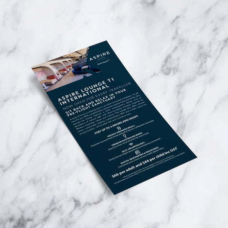 Collateral creation for Perth's newest airport lounges, Flyers, Posters, Loyalty Cards, Evacuation Maps